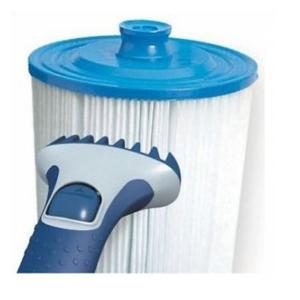- Clean out the dirt and debris by rinsing the filter element with a garden hose both inside and out. Make sure that you clean thoroughly between the pleats- a good device for cleaning properly between the pleats is the WaterWand from SwimSafe.