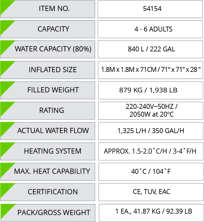 MaxHold fabric internal beams provide superior air pressure retention, stability and lightweight portability. Combined with a 3-layer DuraPlus outer layer, this spa is resistant to punctures and stretching, ensuring it maintains its shape over time.