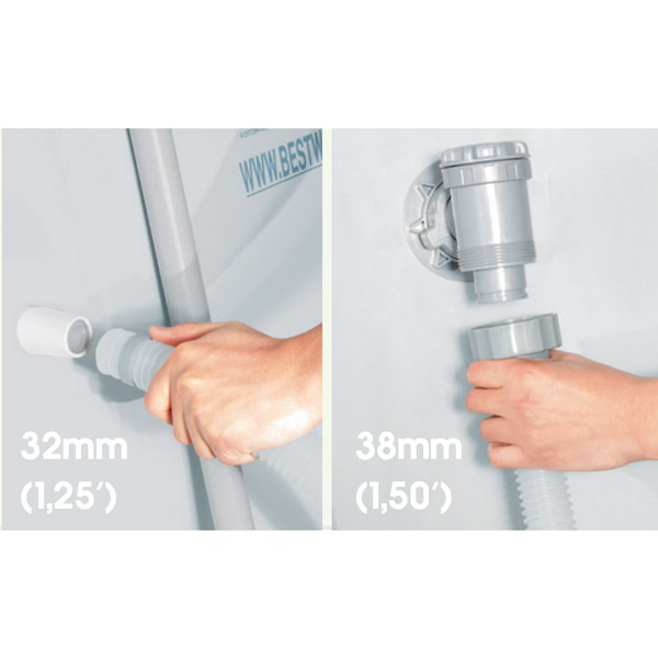 - Can be connected to 3.8cm /1.5”threaded valves.