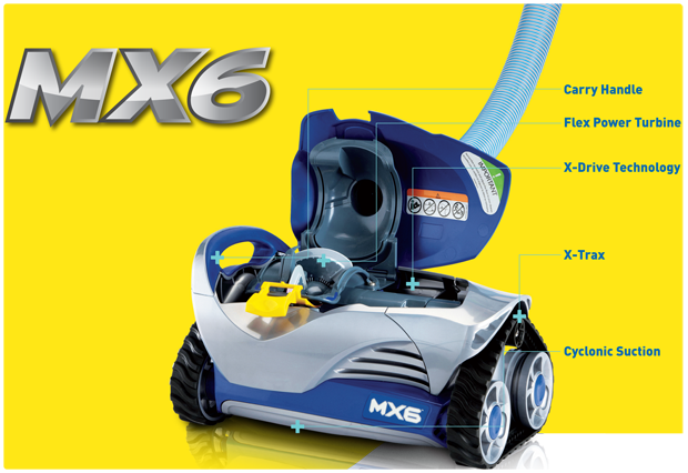 The Zodiac MX6 is compact in size, yet demonstrates a powerful and efficient clean. The MX6 has great manoeuvrability and provides total pool coverage through patented smart technology.