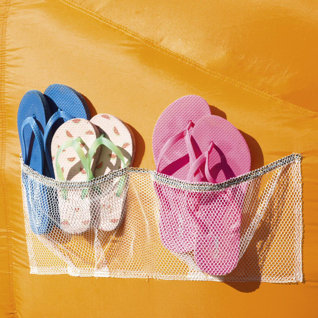 Secure mesh cover surround at tower peak Side mesh shoe storage