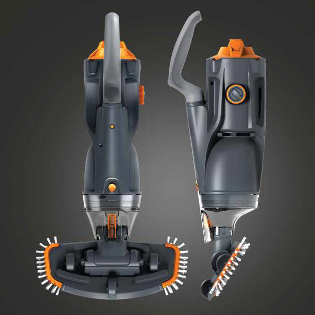 - 1 pivoting head with wheels, side brushes and underside brushes