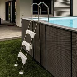 Supplied with a sturdy stainless steel ladder which attaches directly to the structure, giving it greater stability than other above ground pools. Also supplied with stainless steel internal steps. The exterior ladder can be also raised when required. Please note: a pool fence meeting Australian Standards must be installed with this pool.
