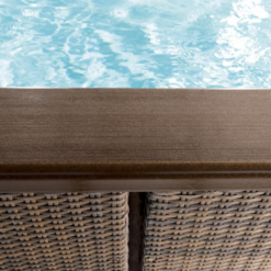 The unique wicker paneling which forms that external face of the DolceVita pool is constructed from an aesthetically pleasing, durable synthetic fiber with practically zero maintenance required. Available in coffee or light grey colouring with a matching top edge coping.