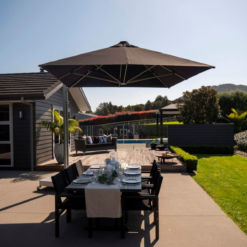 The Serenity™ cantilever umbrella is the perfect solution. It offers a movable shade that sets up or takes down in seconds, allowing you to enjoy more time with your loved ones. With a variety of stylish colors and mounting options to match your home, relaxation just became easier.