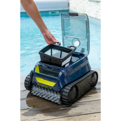 TAP & LIFT REMOVAL SYSTEM –  A convenient and easy waterline retrieval method to remove the FreeRider™ from your pool. After the cleaning is done, simply tap the cleaner with your pool pole prompting it to climb the wall and allowing water to evacuate as you remove it for easy, lightweight handling.